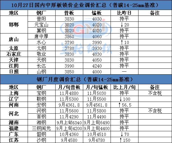 10月27日唐山水心金属制造有限公司中厚板锁价政策