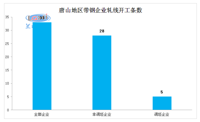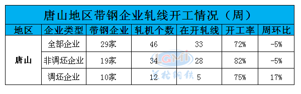 其中非调坯带钢轧机有34个,在开工轧线28条,开工率为82%。调坯带钢轧机12个,在开工轧线5条,开工率为75%。