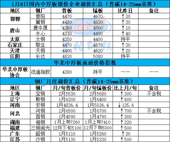 • 1月8日唐山水心金属制造有限公司中厚板锁价政策