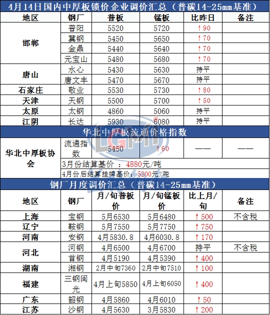 • 4月14日唐山水心金属制造有限公司中厚板锁价政策