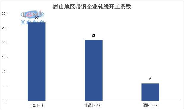 据兰格云商调研监测:本周五(5月21日)兰格网对唐山地区29家带钢企业进行了开工情况调查,调查显示,唐山地区带钢轧机共有46个,本周在开工轧线27条,较上周减少2条,开工率为59%,较上周环比下降4%。