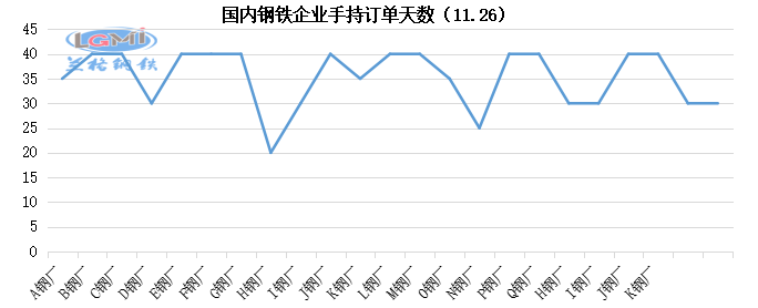 兰格调研:截至11月26日,国内中厚板生产企业手持订单天数:一线企业手持订单天数保持在35-40天左右,二线企业基本保持在25-30天左右,少部分企业叠加月底后结算的协议量能够保持在20天左右。总体手持订单情况继续保持良好。