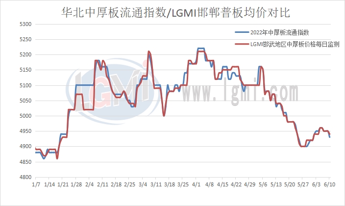 【华北中厚板流通协会】2022年6月10日,华北中厚板流通价格指数为4930元/吨。