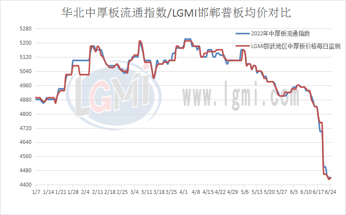 【华北中厚板流通协会】2022年6月24日,华北中厚板流通价格指数为4440元/吨。