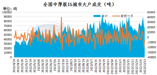 - 12月13日全国15个重点城市中厚板样本大户出货量2022/12/13