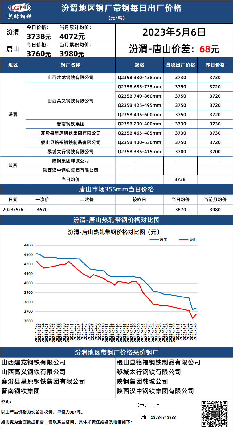 • 5月6日汾渭地区钢厂带钢出厂价格