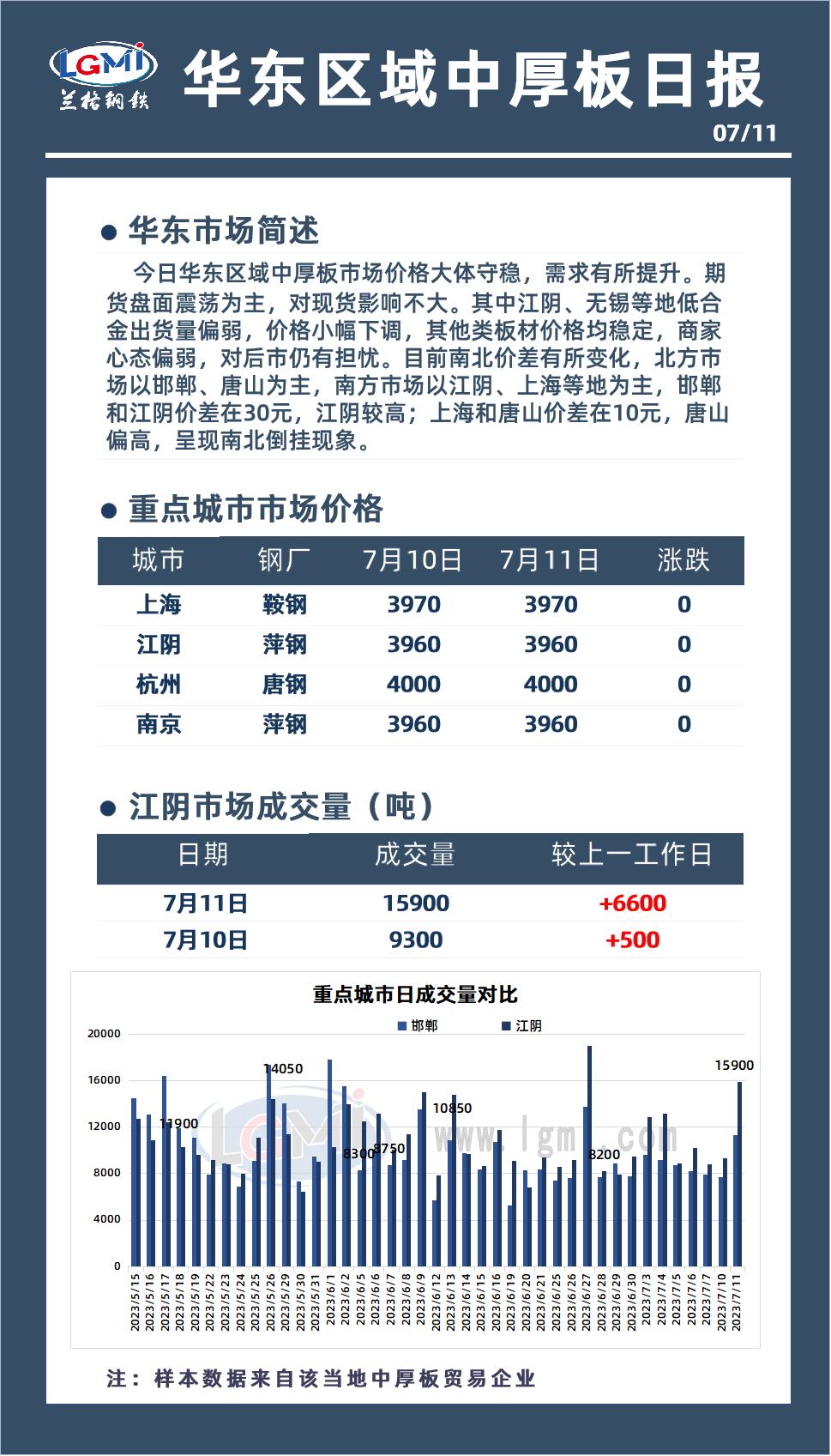 华东区域中厚板价格稳定 重点区域交易稍有好转