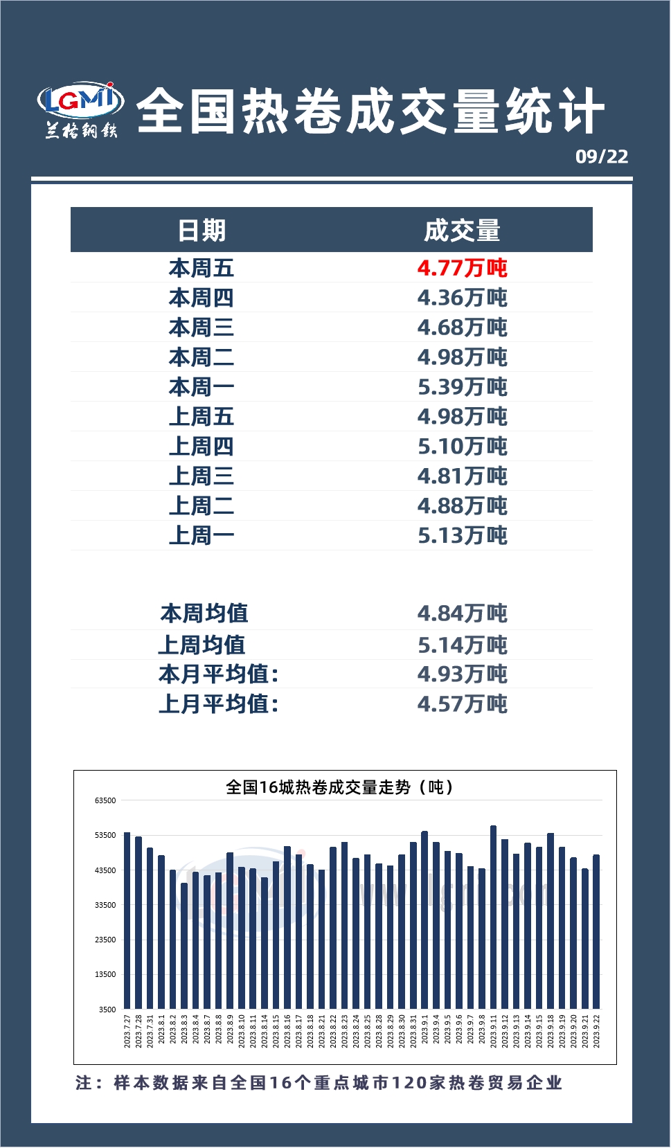 9月22日全国16个重点城市热轧板卷大户日出货量