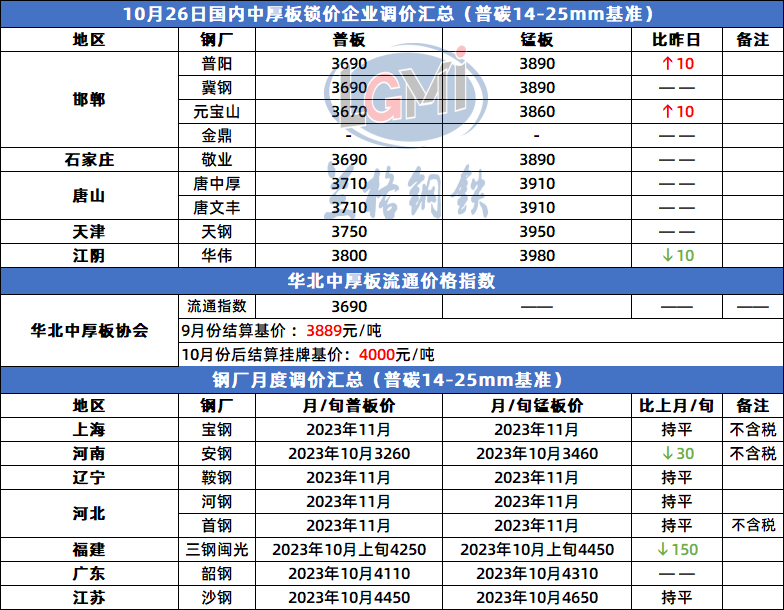 • 2023年10月26日普阳钢铁中厚板锁价政策调整