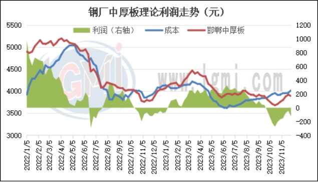 3、四季度中厚板进入亏损状态 持续到当前依然未打平 是钢企减产主因