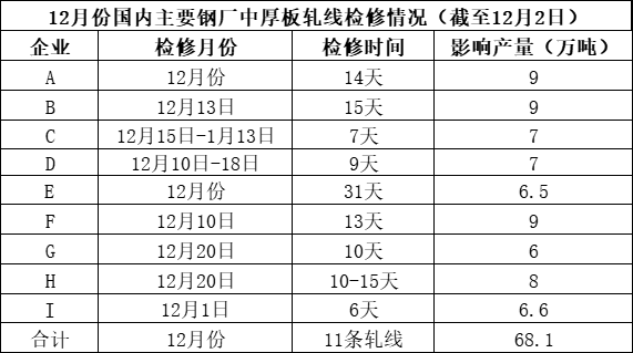 5、12月国内主要钢厂中厚板检修向南蔓延 影响结构从流通向品种扩大
