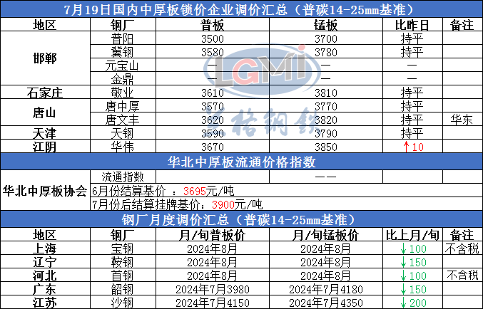 • 2024年7月19日普阳钢铁中厚板锁价政策