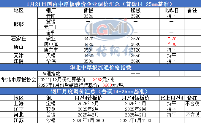 • 1月21日九江萍钢江阴、无锡区域板材指导价格
