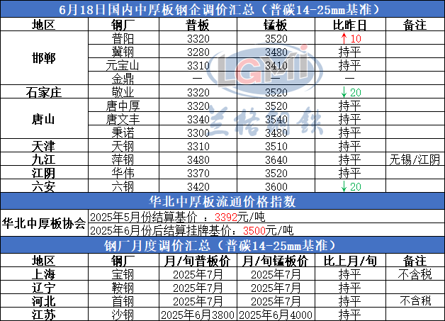 • 6月18日国内中厚板生产企业调价汇总
