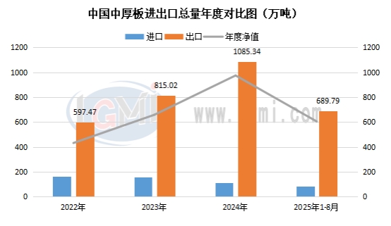 “金钢杯”进出口速递—2025年前8月我国中厚板进口出口双增 净出口量同比增超10%