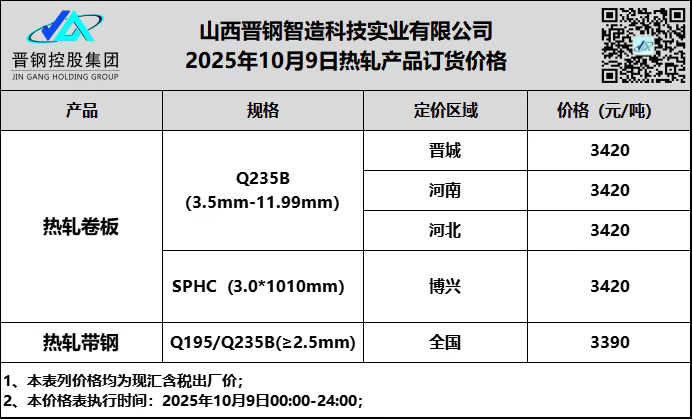 • 10月9日山西晋钢冷系 涂镀订货价格