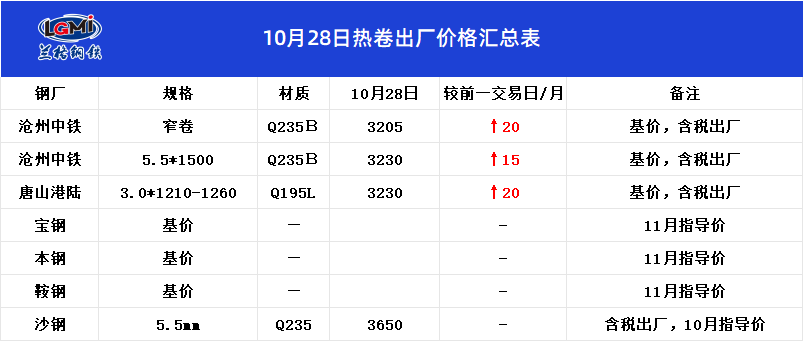 • 10月28日热卷出厂价格汇总