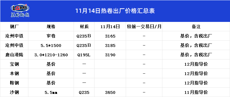 • 11月14日热卷出厂价格汇总