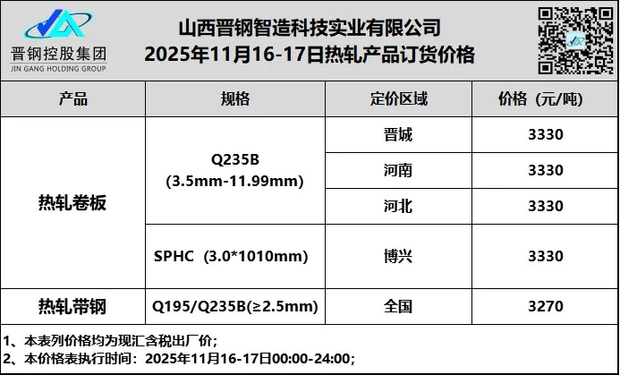 • 11月17日山西晋钢热轧卷板订货价格