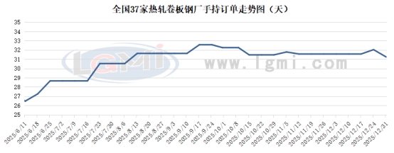 国内热卷生产企业手持订单天数均值为31天,较上周下降1天。具体来看,一线企业手持订单天数保持在30天左右,二线企业基本保持在15-25天。