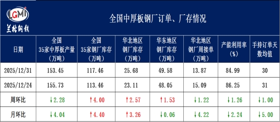 兰格调研:全国中厚板钢厂生产情况周统计(12月31日)
