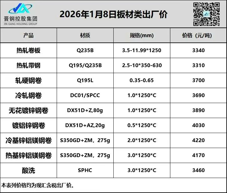 • 2026年1月7日(二次)烘熔钢铁中板锁价政策