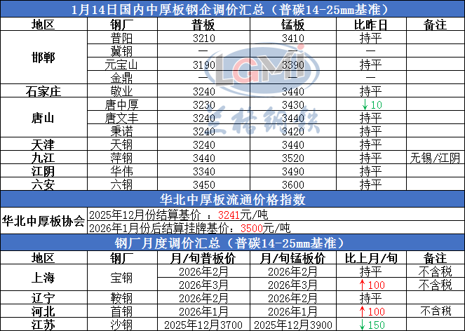 • 2026年1月14日烘熔钢铁中厚板锁价政策