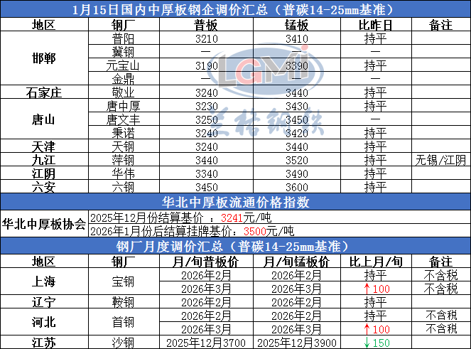 • 2026年1月15日烘熔钢铁中厚板锁价政策