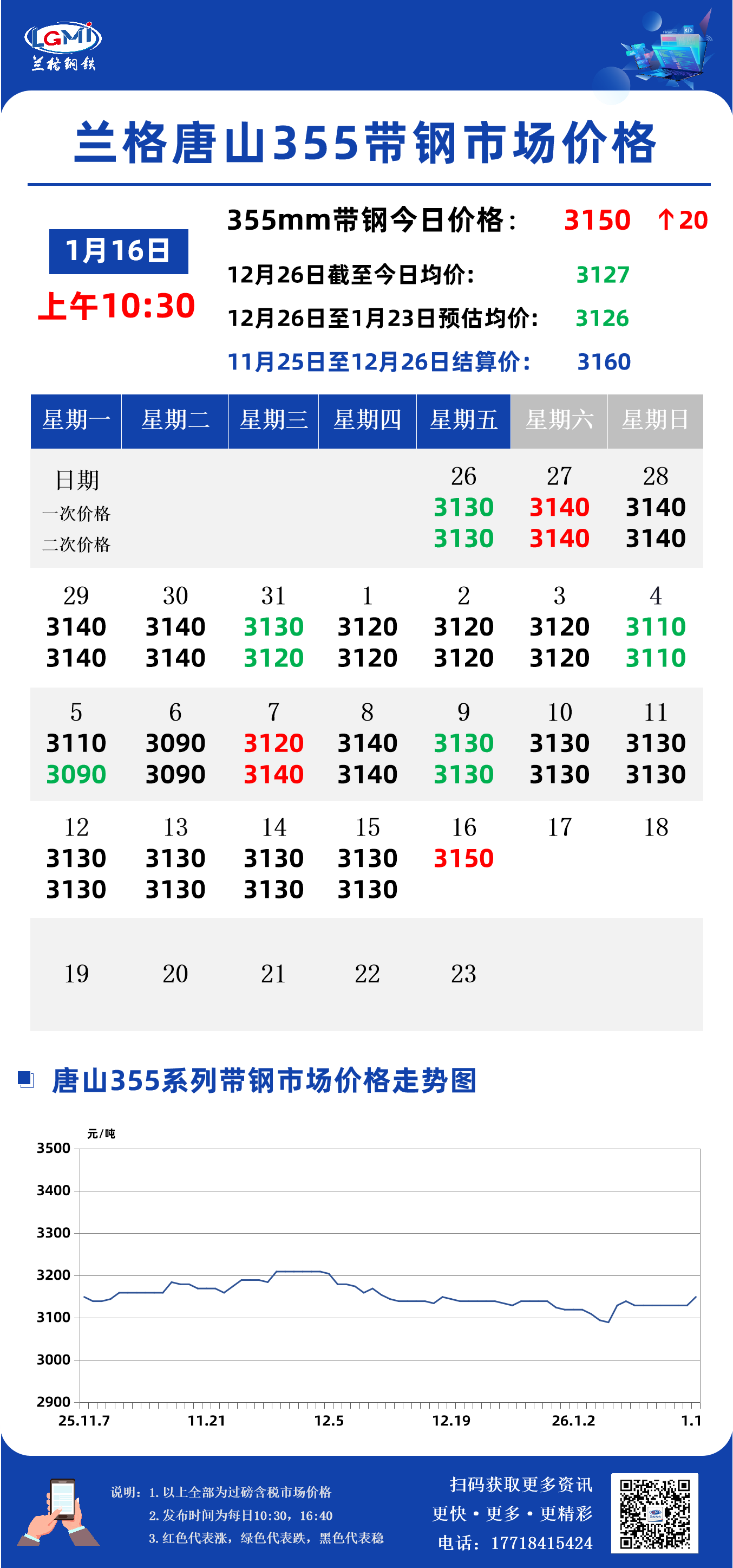 据兰格钢铁云商平台监测数据显示,截至1月16日10:30,唐山地区355系列带钢市场价格为3150元,较昨日市场收盘价格涨20元。