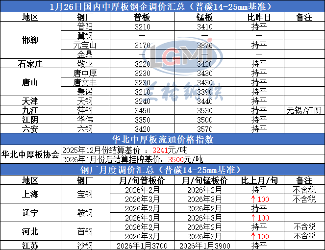 • 22026年1月26日普阳钢铁中厚板锁价政策