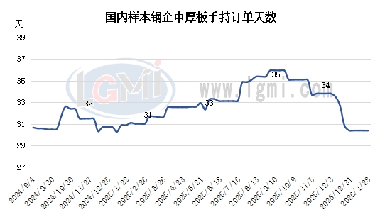 1月28日,本周国内钢企手持订单小幅缩量的趋势,总体表现为良:一线企业手持订单天数保持在30-60天左右,二线企业基本保持在25-35天。从近期钢厂排产计划来看,钢企排产周期变化不大,但随着年节临近,钢企接单量后期或将有所减少,排产周期或逐渐缩短。