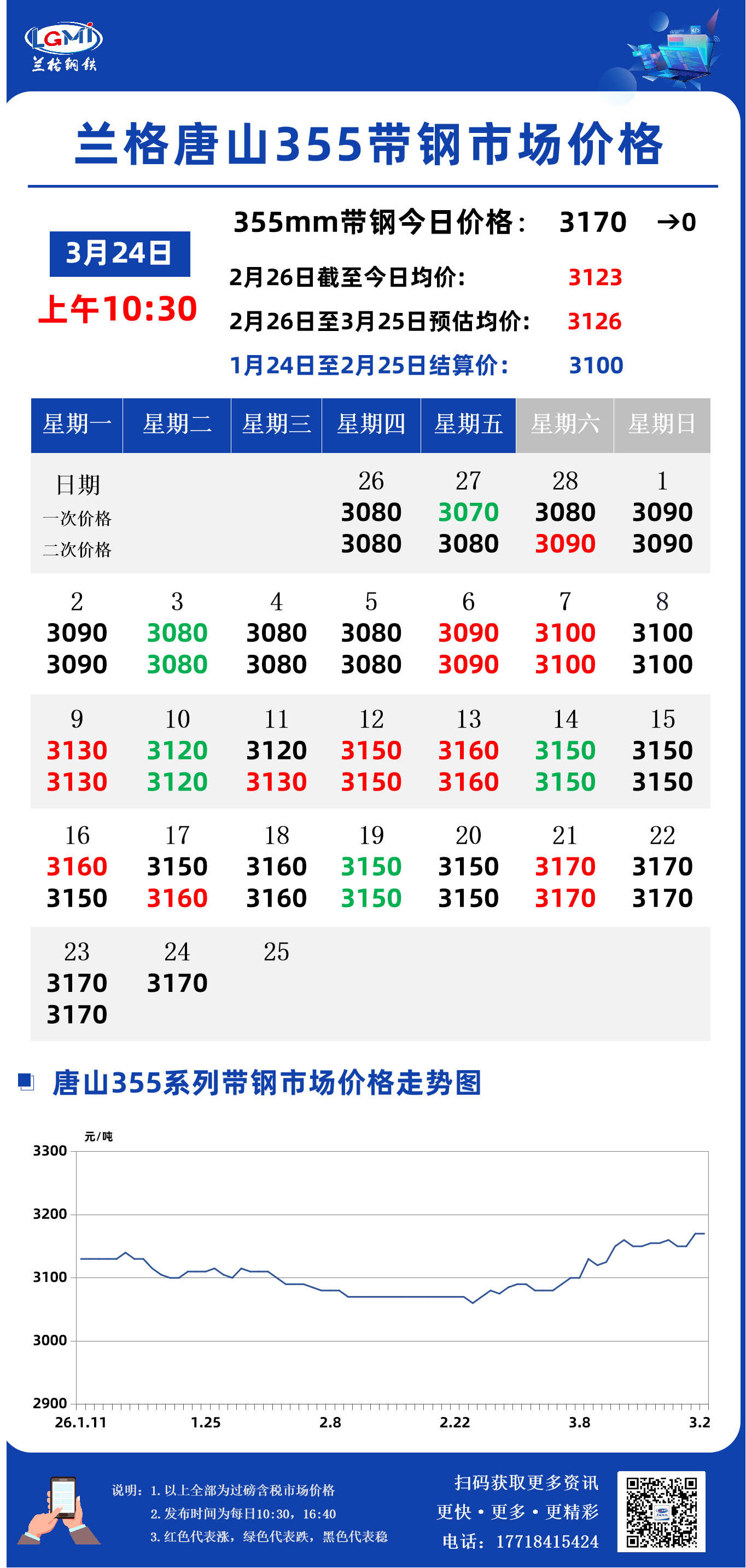 兰格钢铁云商平台监测数据显示,截至3月24日10:30,唐山地区355系列带钢市场价格为3170元,较昨市场收盘价格稳。