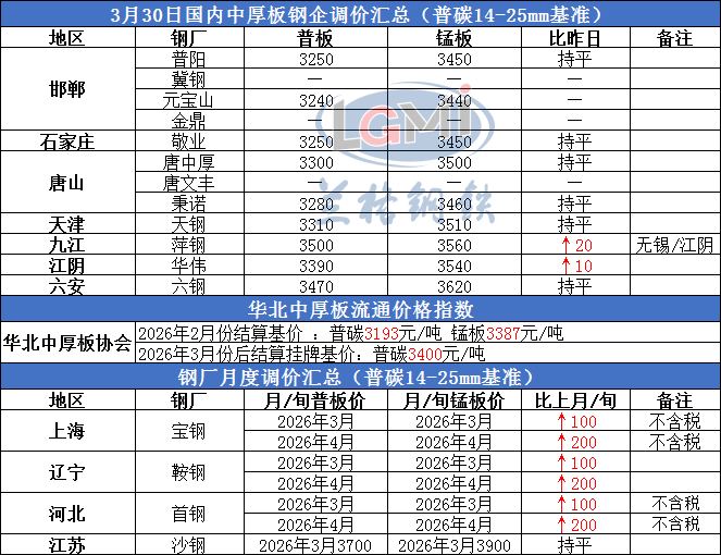• 2026年3月30日烘熔钢铁中厚板锁价政策