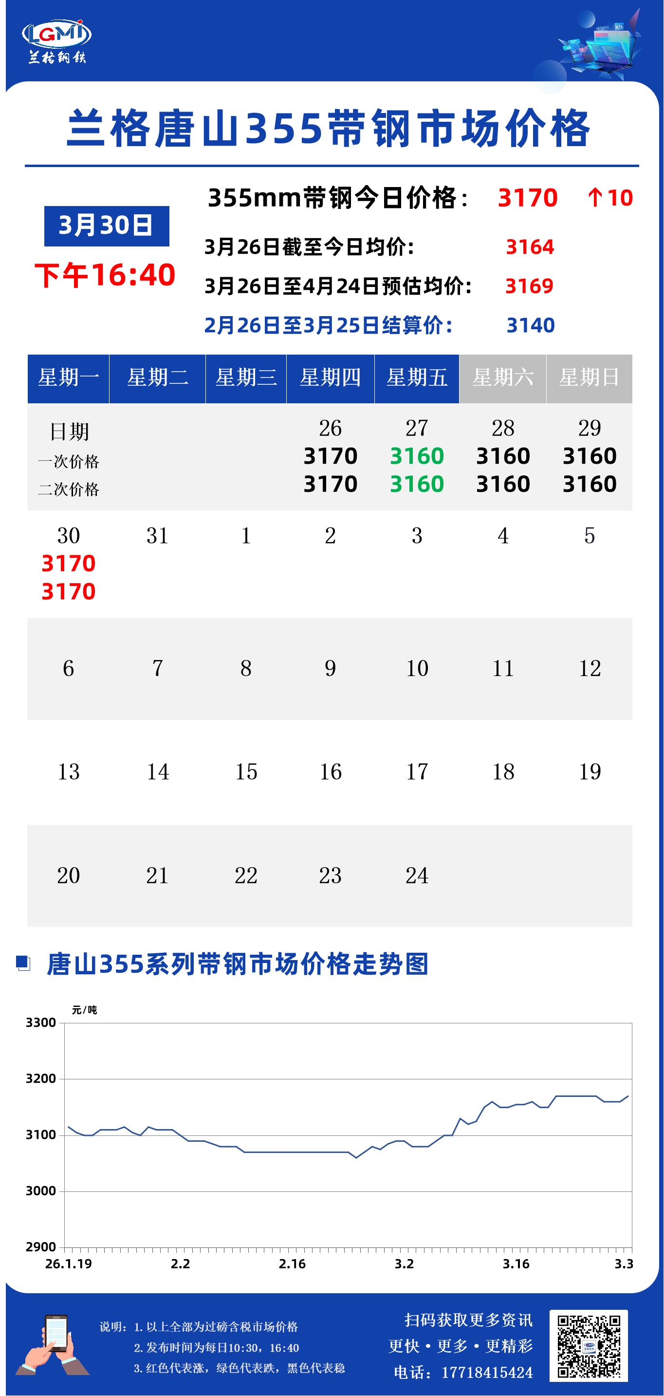 兰格钢铁云商平台监测数据显示,截至3月30日16:40,唐山地区355系列带钢市场价格为3170元,较昨日市场收盘价格涨10元。