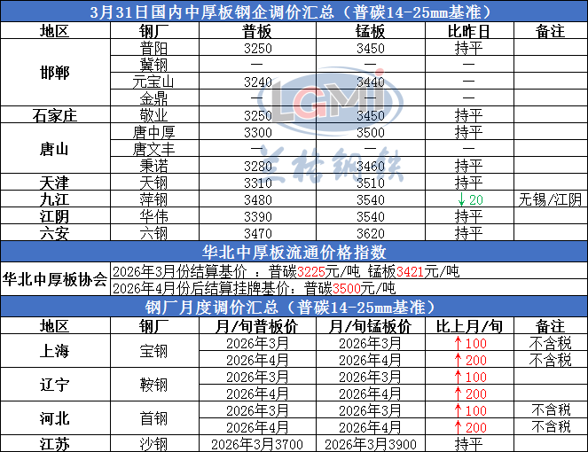 • 2026年3月31日敬业钢铁中厚板锁价政策
