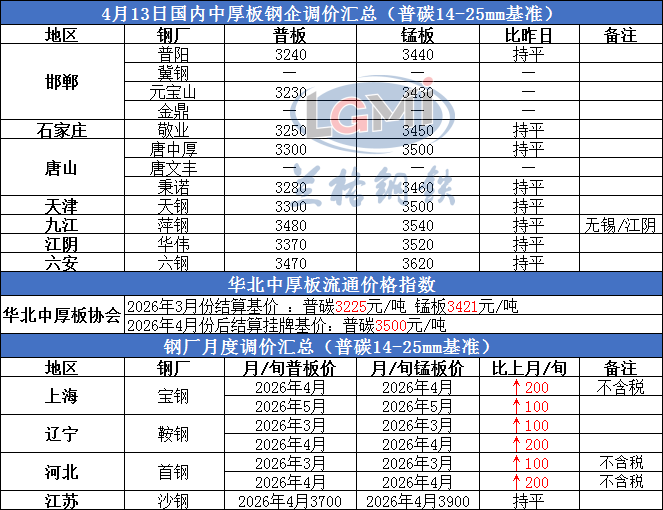 • 2026年4月13日烘熔钢铁中厚板锁价政策