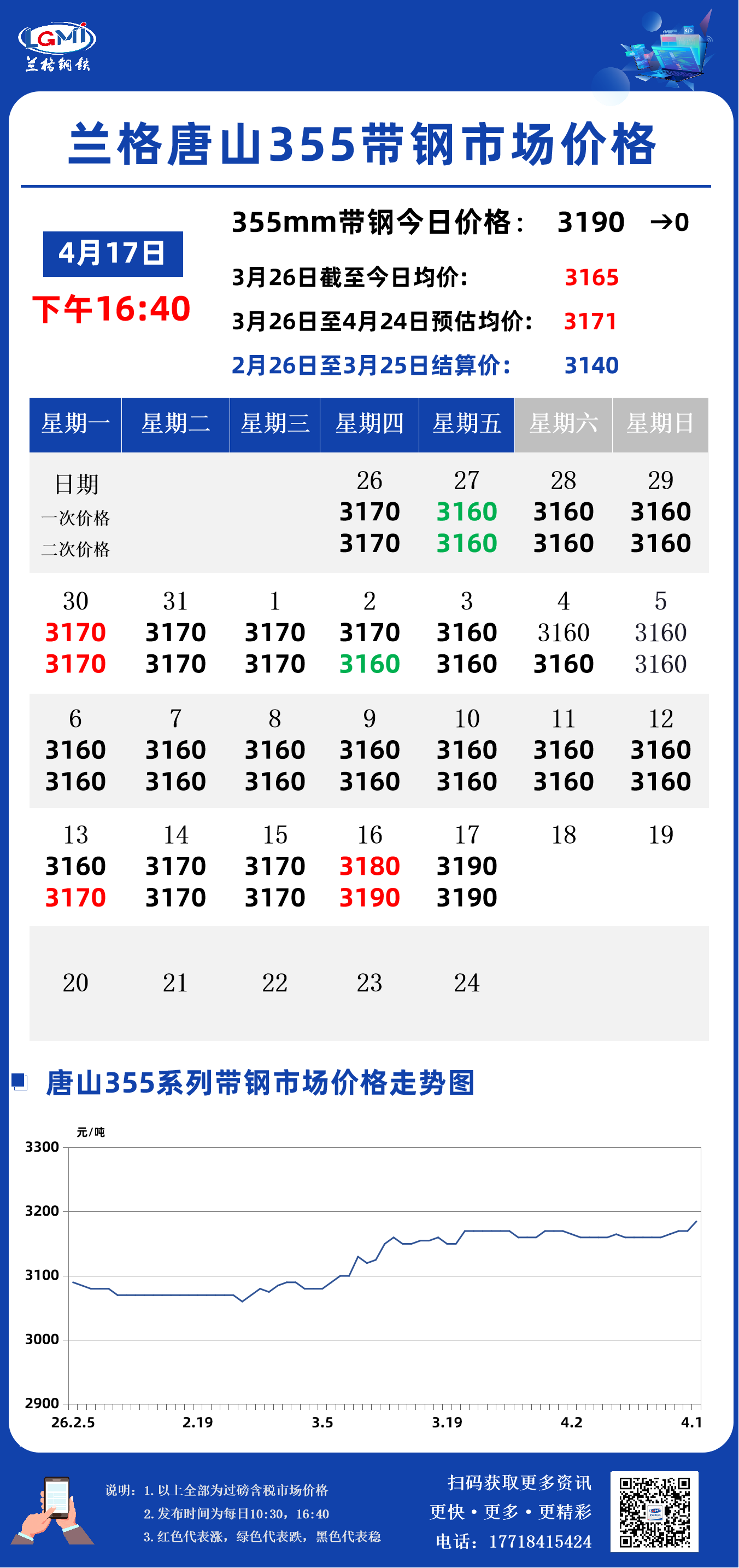 兰格钢铁云商平台监测数据显示,截至4月17日16:40,唐山地区355系列带钢市场价格为3190元,较昨市场收盘价格稳。