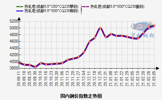 - 快讯:5日成都冷轧板卷价格下调30元2021/3/5