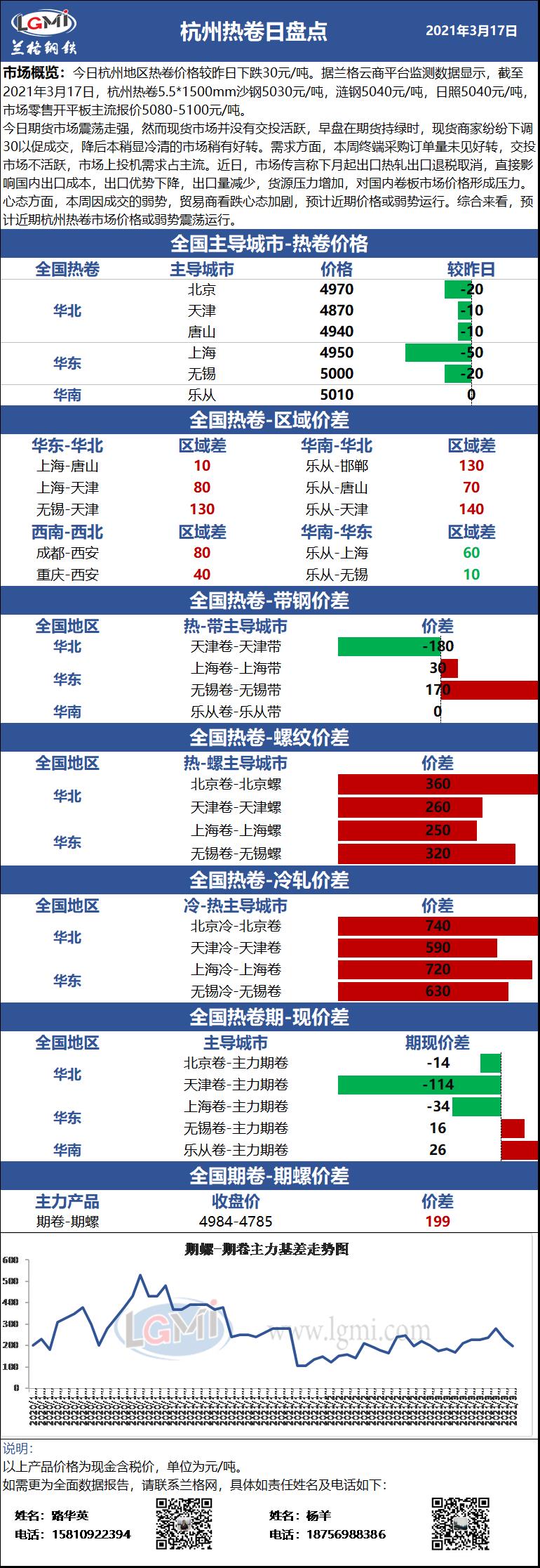 3月17日杭州热卷价格小幅下跌 明日或将弱势运行