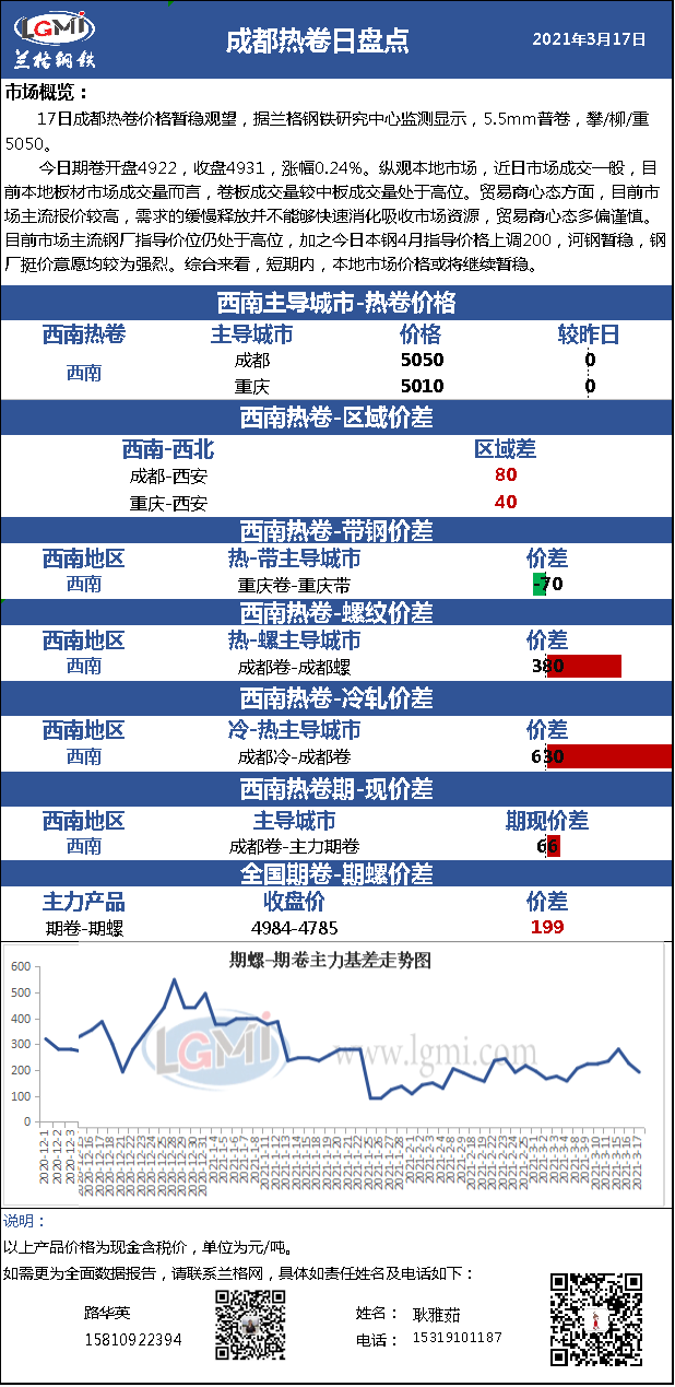 - 3月17日成都热卷市场价格暂稳 贸易商多谨慎观望2021/3/17
