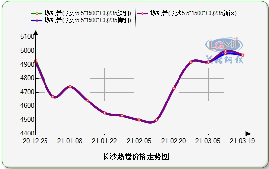 - 快讯:3月19日长沙热卷价格4970元,与昨日持平2021/3/19