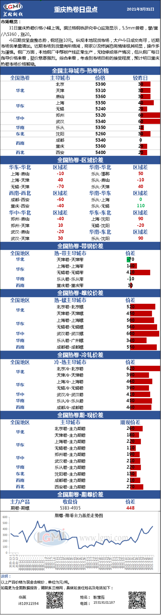 - 3月31日重庆热卷价格小幅上调 预计明日以稳为主2021/3/31
