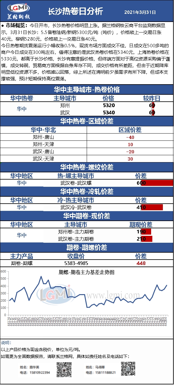 - 3月31日长沙热卷明显上涨 预计短期高位震荡运行2021/3/31