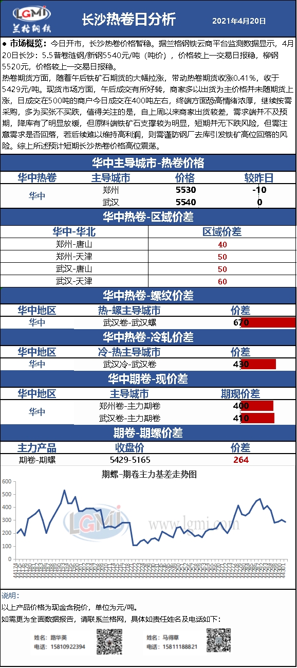 - 4月20日长沙热卷维稳运行 预计短期高位震荡2021/4/20