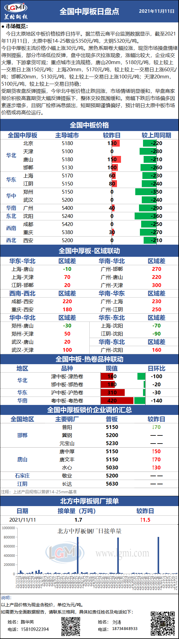 - 兰格中厚板日盘点(11.11):现货报价止跌探涨 下游企业部分补库 接单情况好转2021/11/11