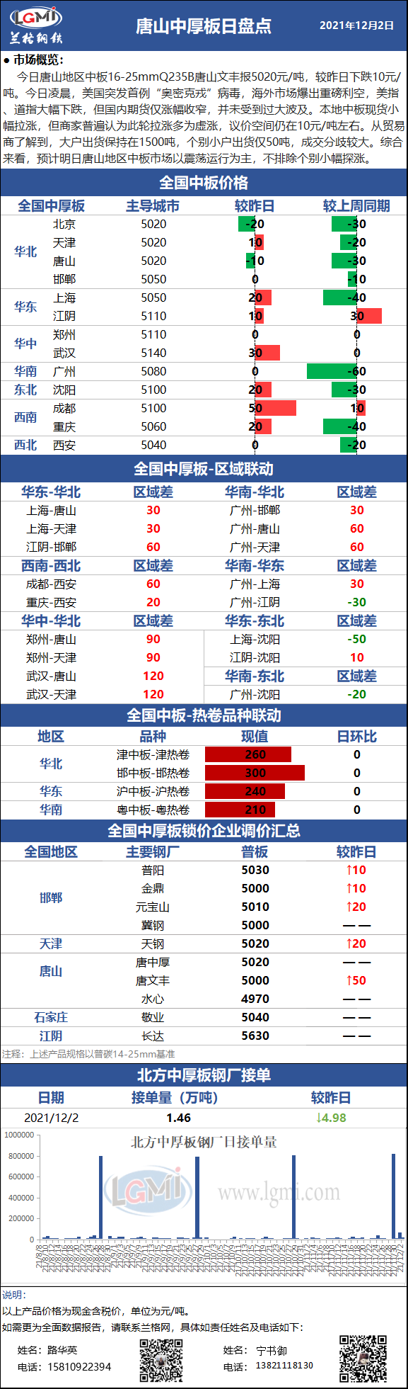 12月2日唐山中板小幅拉涨 成交分歧较大