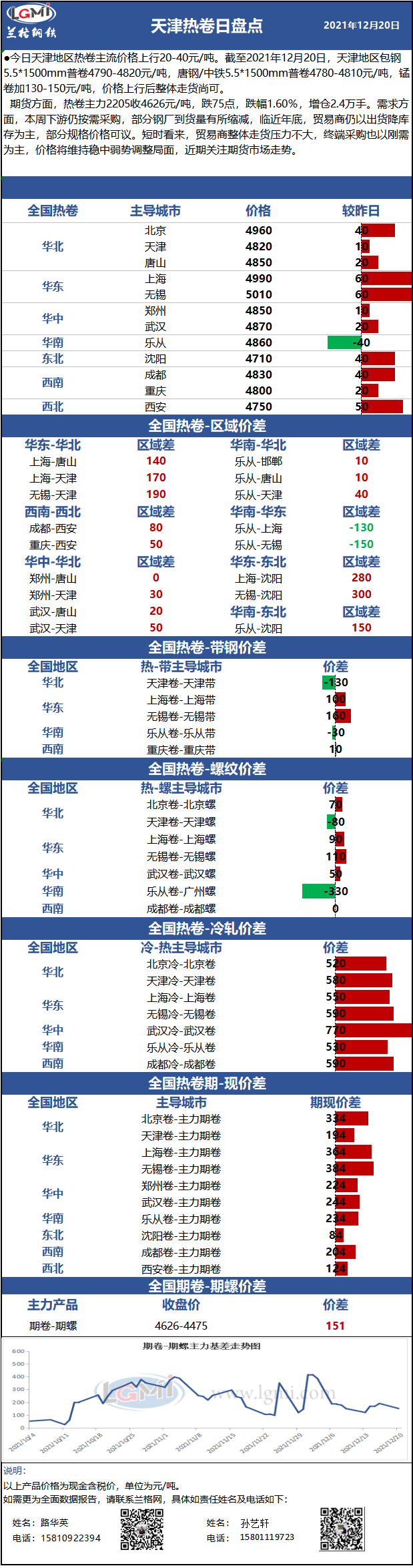 - 12月20日天津热卷主流上行 贸易商出货降库存2021/12/20
