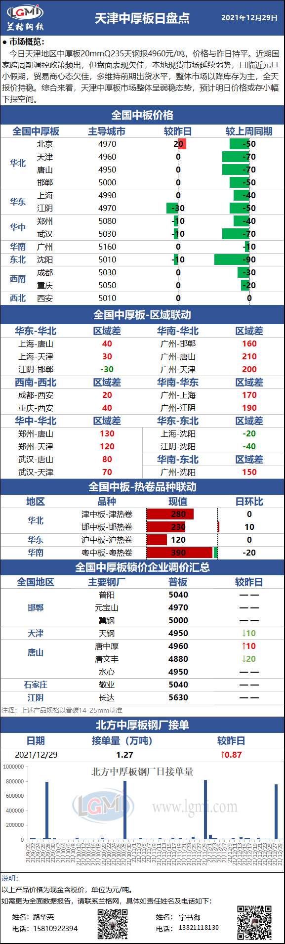12月29日天津中厚板市场延续弱势 全天报价持稳