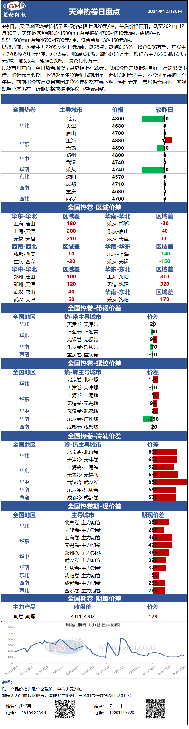 - 兰格热卷日盘点(12.30):热卷需求持续缩减 部分终端企业休市2021/12/30