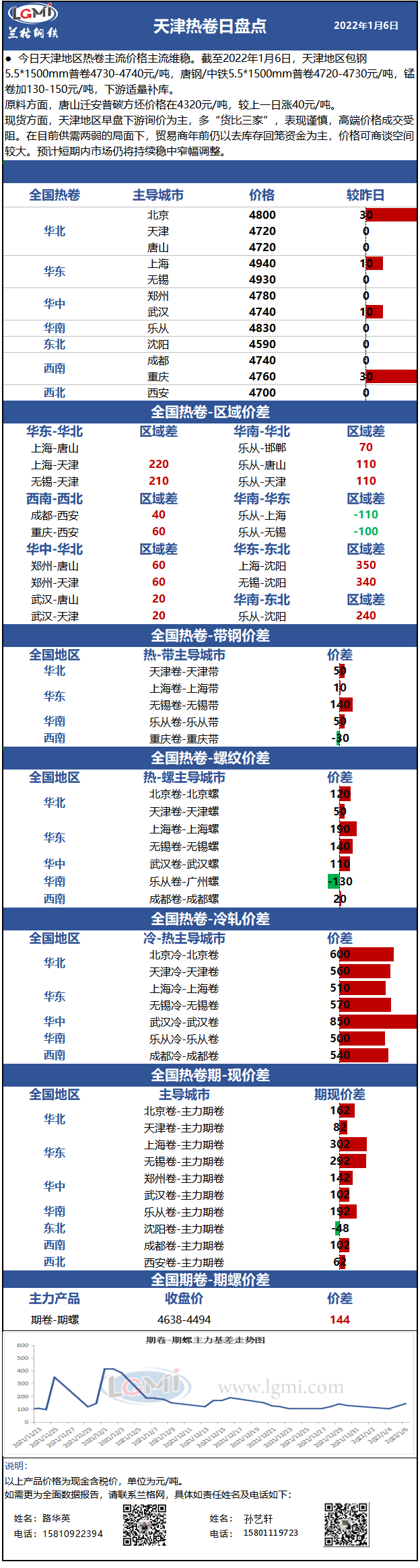 - 1月6日天津地区热卷价格主流维稳 下游观望情绪浓厚2022/1/6